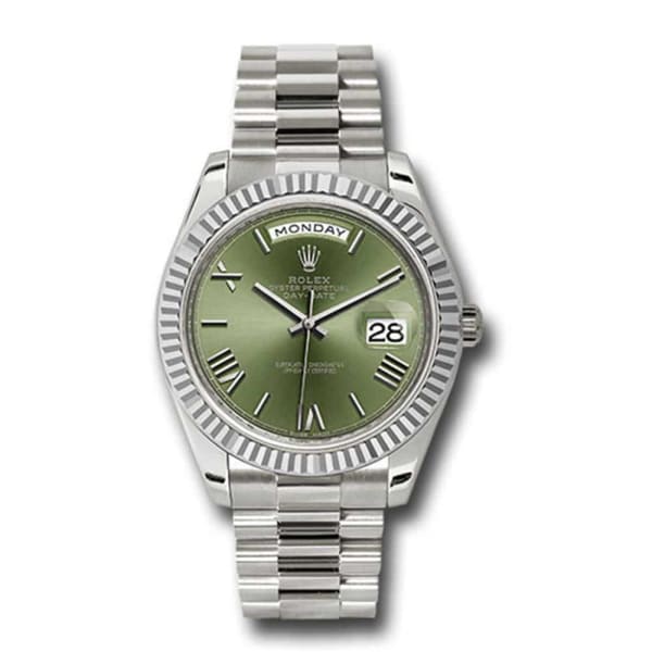 Rolex Day-Date 40 Olive green dial, Fluted Bezel, President bracelet, White gold Watch 228239-0033